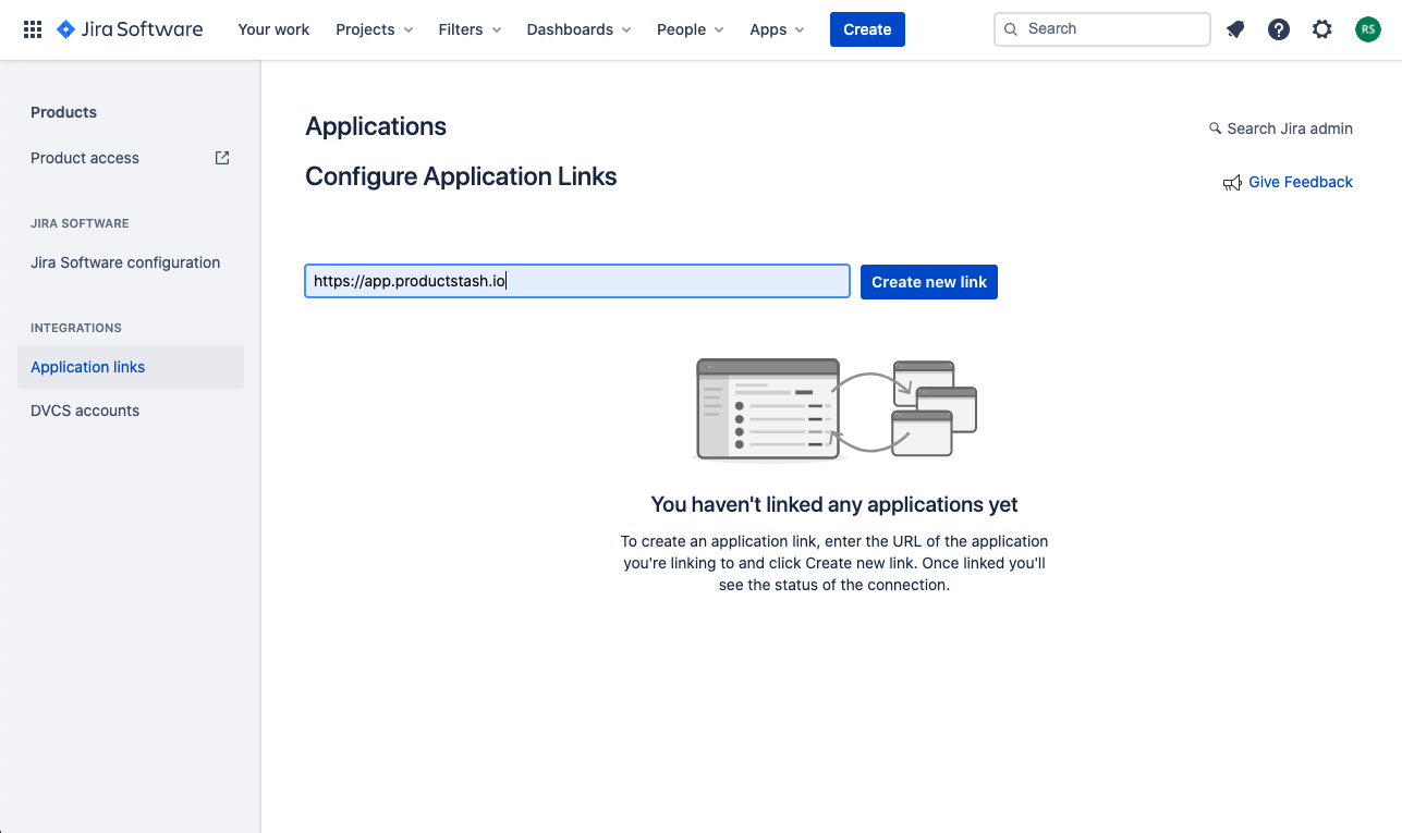 With your public key copied, navigate to your Jira instance, and select 'Products' from your main menu: